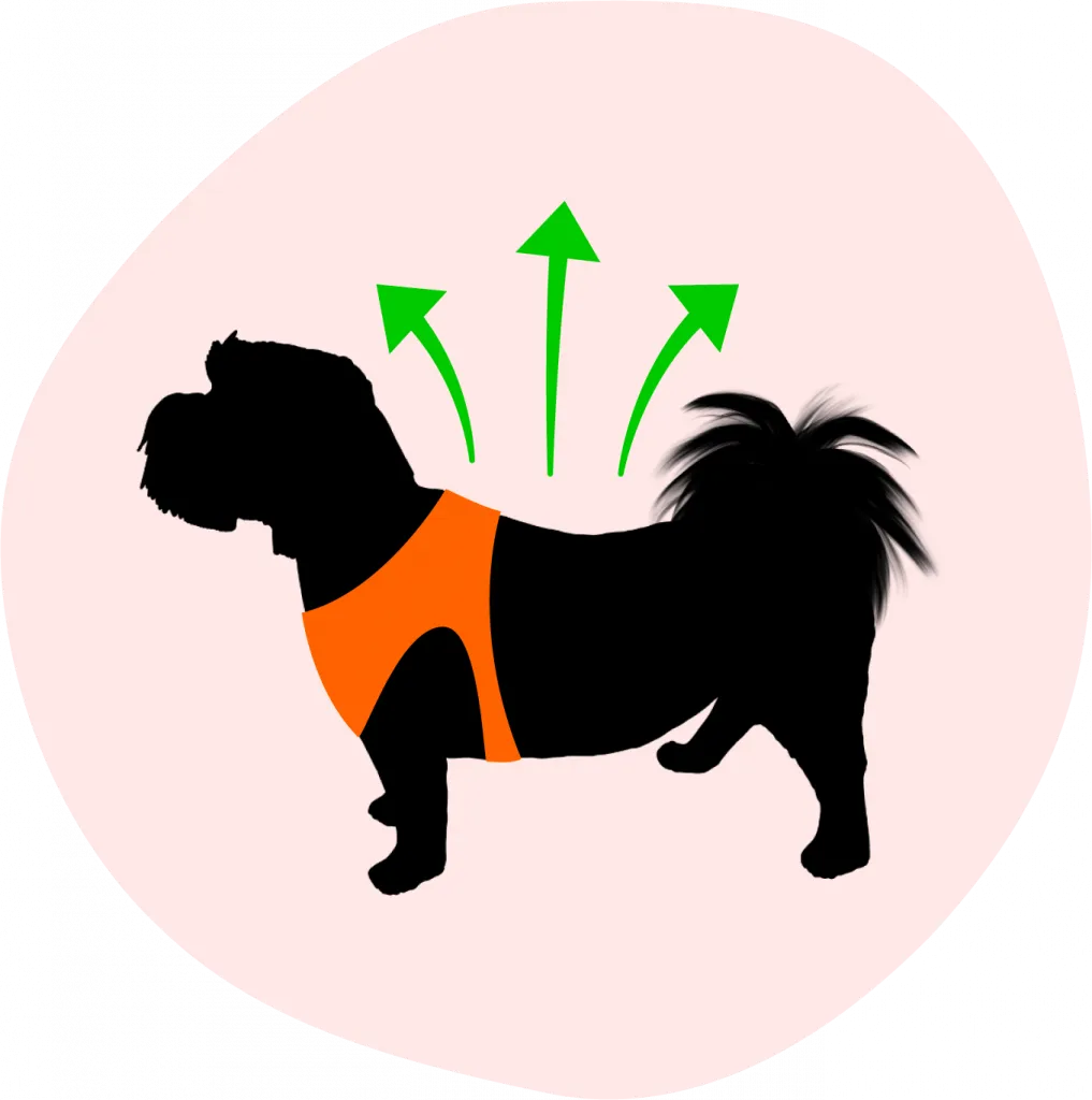 For our Ruff ‘n Ready style harness, place the shortest piece of fabric on their back and the longest piece on their chest.